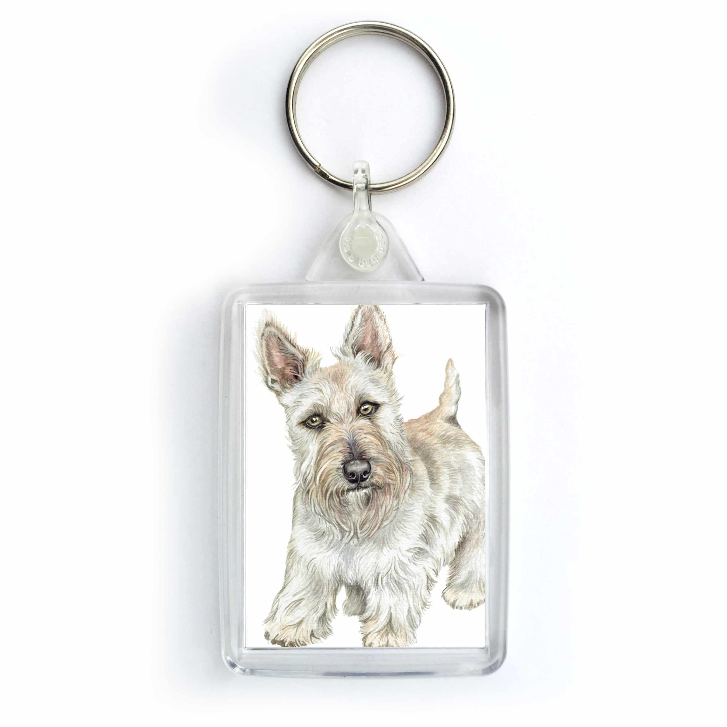 - Features a miniature reproduction of a Wheaten Scottish Terrier Dog from an original painting by Christine Varley