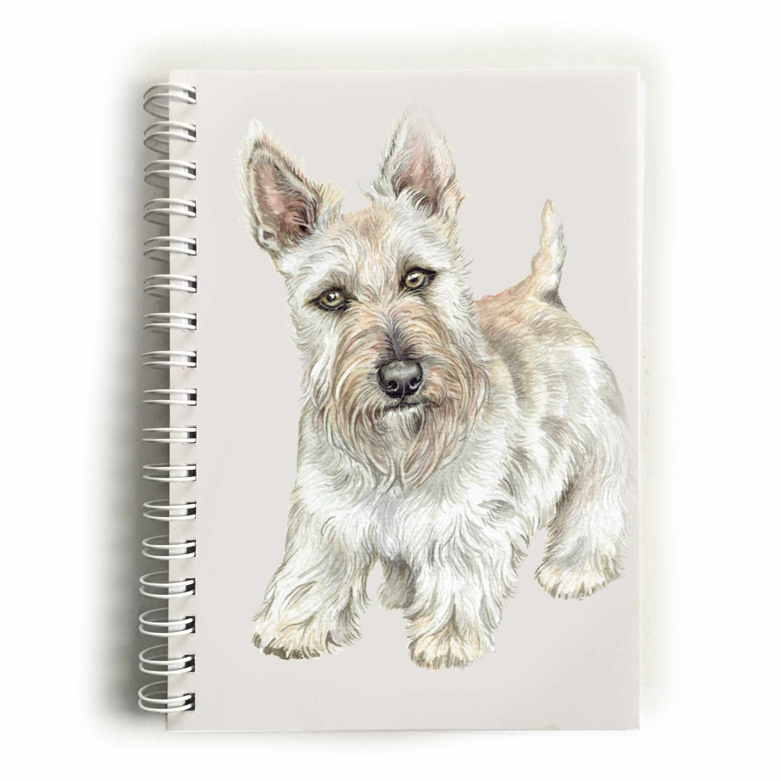 Wheaten Scottish Terrier Dog Illustration reproduced on a spiral bound notebook , with the picture taken from from an original watercolour painting by artist Christine Varley….a great gift for animal lovers